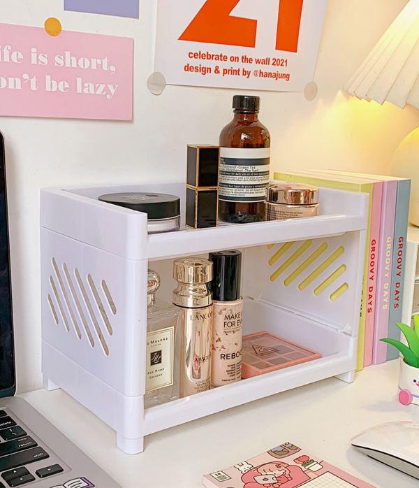 ESTANTE DE ALMACENAMIENTO DESMONTABLE DE DOBLE CAPA DE PLÁSTICO PLEGABLE ESTANTE DE ARTÍCULOS DIVERSOS DE ESCRITORIO PARA DORMITORIO PARA EL HOGAR